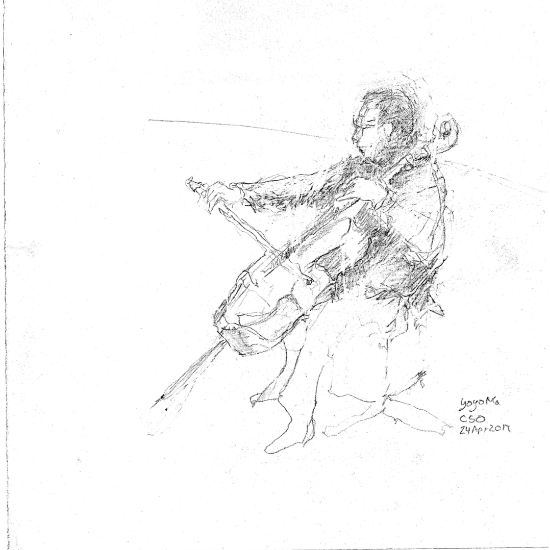 Yoyo Ma sketched in situ at the Chicago Symphony Centre. Yoyo is the artistic director for the Chicago Symphony Centre. I don’t know what exact music he was playing that day I was just happy to be there! He’s a really lovely guy!